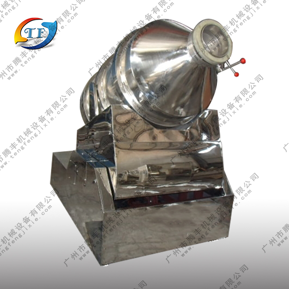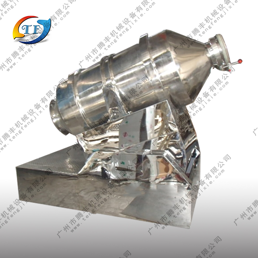 二維運(yùn)動(dòng)混合機(jī)主要由轉(zhuǎn)筒、擺動(dòng)架、機(jī)架三大部分構(gòu)成。